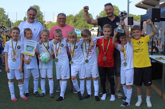 | Lange führte der VfB Zwenkau mit 1:0. Aber die letzte Luft hatte der Lokalmatador, der in der letzten Minute und schließlich der Nachspielzeit das Spiel drehte und vom Vorsitzenden des Förderverein Kinder- und Jugendfußball Gera Heiko Schulze den Siegerpokal in Empfang nehmen konnte.  Endstand: |
